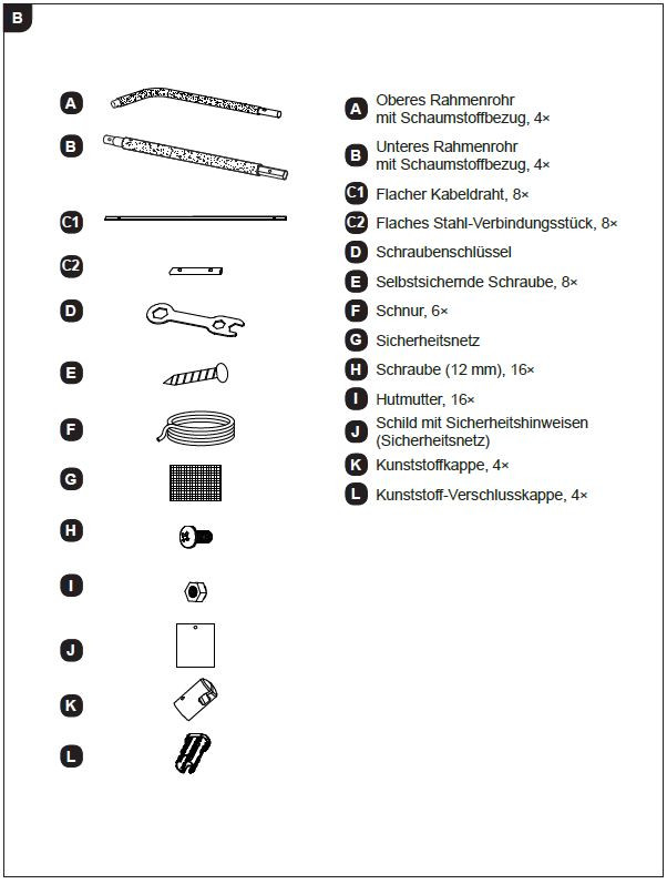 für Trampolin mit Sicherheitsnetz TR-QL-120KA-ALDI Artikelnummer : 97860 Größe : ø305 ×... mehr