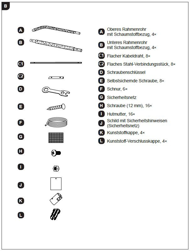 für Trampolin mit Sicherheitsnetz TR-QL-120KA-ALDI Artikelnummer : 4275 Größe : ø 305 × 252... mehr