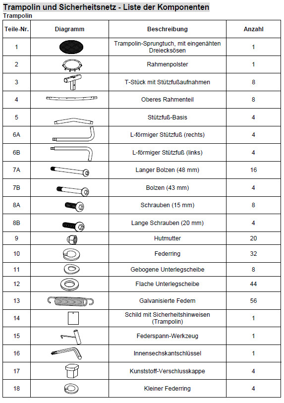 für Trampolin mit Sicherheitsnetz TR-QL-120KA-ALDI Artikelnummer: 79885 Größe: ø305 x 245cm... mehr