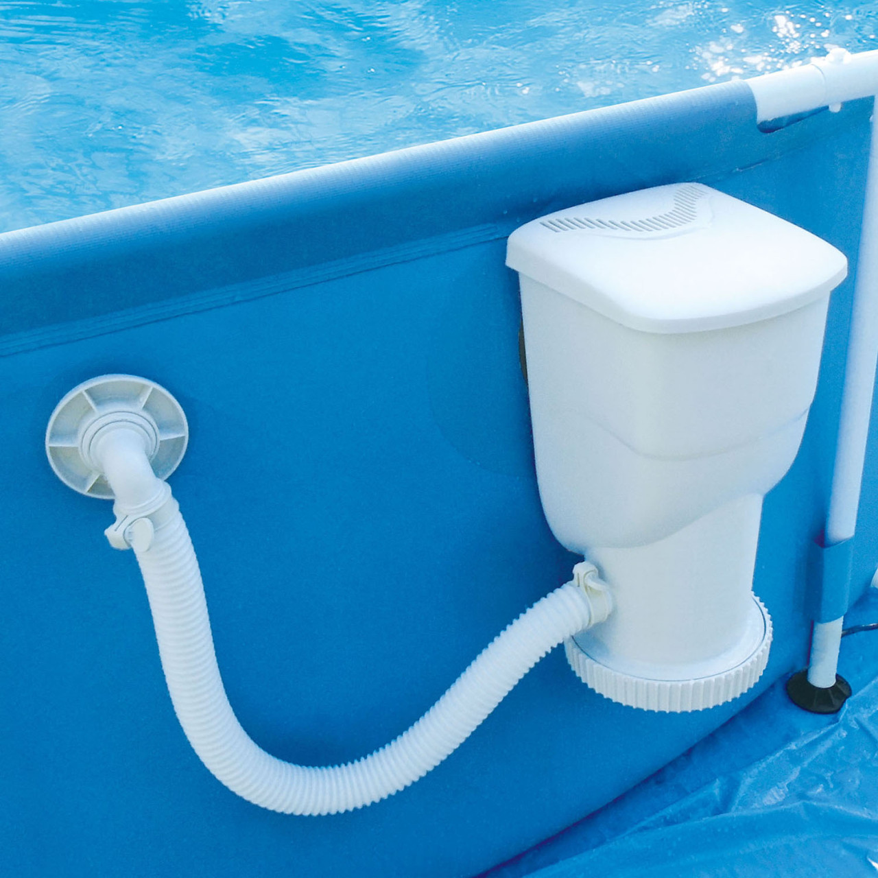 Sorgen Sie für sauberes Wasser mit der Summer Waves SFX600-Filterpumpe SkimmerPlus. Dieses innovative Filtersystem kombiniert die Funktionen eines Skimmers und einer Filterpumpe in einem Gerät. Die einzigartige Skimming-Technologie entfernt kontinuierlich Verunreinigungen von der Wasseroberfläche, während die Filterpatrone und das ultrafeine Filterpapier das Poolwasser reinigt.